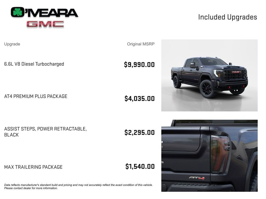 Titanium Rush Metallic 2026 GMC Sierra 2500HD AT4 4WD 10-Speed Automatic Duramax 6.6L V8 Turbodiesel 10-Speed Automatic, 4WD, Jet Black With Kalahari Accents Leather. Price includes: $1000 - Buick & GMC Consumer Cash Program. Exp. 04/30/2026 $500 - GM First Responder Cash Allowance Program. Exp. 01/04/2027