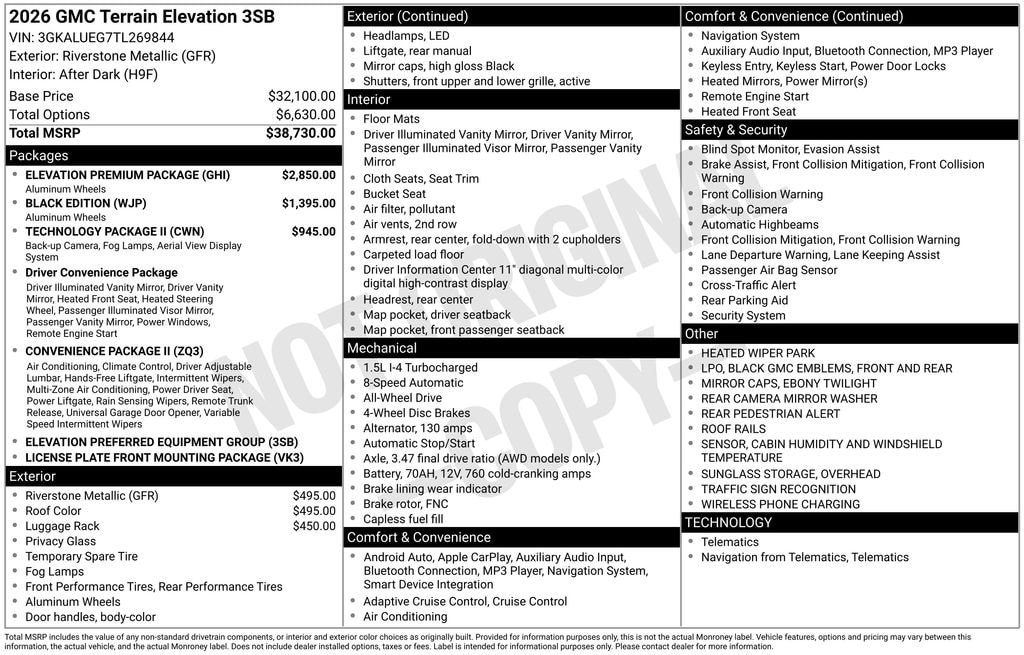 Riverstone Metallic 2026 GMC Terrain Elevation AWD 8-Speed Automatic with Overdrive 1.5L DOHC AWD.