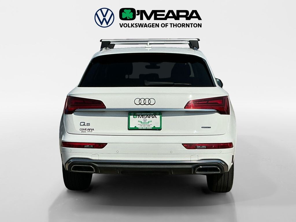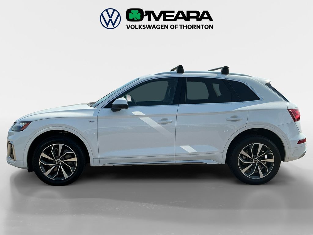 Q5 45 S line Premium Plus quattro, 4D Sport Utility, 2.0L Turbocharged, 7-Speed Automatic S tronic, quattro, Ibis White, Black w/Leather Seating Surfaces, 10 Speakers, 4-Wheel Disc Brakes, 5.302 Axle Ratio, ABS brakes, Air Conditioning, Alloy wheels, AM/FM radio, Auto-dimming Rear-View mirror, Automatic temperature control, Brake assist, Bumpers: body-color, Compass, Delay-off headlights, Driver door bin, Driver vanity mirror, Dual front impact airbags, Dual front side impact airbags, Electronic Stability Control, Emergency communication system: Audi connect CARE, Exterior Parking Camera Rear, Four wheel independent suspension, Front anti-roll bar, Front Bucket Seats, Front Center Armrest, Front dual zone A/C, Front fog lights, Front reading lights, Garage door transmitter: HomeLink, Genuine wood console insert, Genuine wood dashboard insert, Genuine wood door panel insert, Heated 8-Way Power Front Bucket Seats, Heated door mirrors, Heated front seats, Illuminated entry, Leather Seating Surfaces, Leather Shift Knob, Low tire pressure warning, Occupant sensing airbag, Outside temperature display, Overhead airbag, Overhead console, Panic alarm, Passenger door bin, Passenger vanity mirror, Power door mirrors, Power driver seat, Power Liftgate, Power passenger seat, Power steering, Power windows, Radio data system, Radio: Audi Sound System, Rain sensing wipers, Rear air conditioning, Rear anti-roll bar, Rear fog lights, Rear reading lights, Rear seat center armrest, Rear window defroster, Rear window wiper, Remote keyless entry, Roof rack, Security system, Speed control, Speed-sensing steering, Speed-Sensitive Wipers, Split folding rear seat, Spoiler, Steering wheel mounted audio controls, Tachometer, Telescoping steering wheel, Tilt steering wheel, Traction control, Trip computer, Turn signal indicator mirrors, Variably intermittent wipers, Wheels: 18" 5-Arm-Turbine Design.