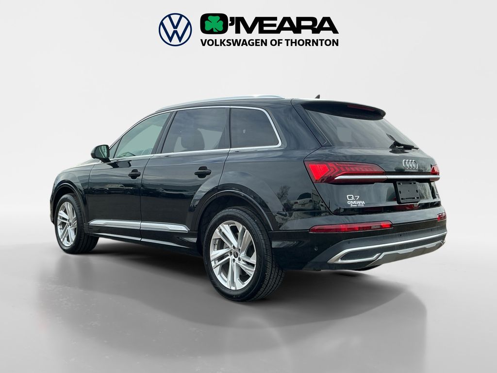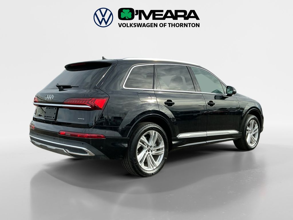 Q7 55 Premium Plus quattro, 4D Sport Utility, 3.0L TFSI, 8-Speed Automatic with Tiptronic, quattro, Mythos Black Metallic, Black w/Leather Seating Surfaces, 10 Speakers, 3.204 Axle Ratio, 3rd row seats: bench, 4-Wheel Disc Brakes, ABS brakes, Air Conditioning, Alloy wheels, AM/FM radio: SiriusXM w/ 360L, Auto High-beam Headlights, Auto-dimming door mirrors, Auto-dimming Rear-View mirror, Automatic temperature control, Brake assist, Bumpers: body-color, Compass, Delay-off headlights, Driver door bin, Driver vanity mirror, Dual front impact airbags, Dual front side impact airbags, Electronic Stability Control, Emergency communication system: Audi connect CARE, Exterior Parking Camera Rear, Four wheel independent suspension, Front anti-roll bar, Front Bucket Seats, Front Center Armrest, Front dual zone A/C, Front fog lights, Front reading lights, Fully automatic headlights, Garage door transmitter: HomeLink, Genuine wood door panel insert, Heated door mirrors, Heated Front Bucket Seats, Heated front seats, Illuminated entry, Leather Seating Surfaces, Leather Shift Knob, Leather steering wheel, Low tire pressure warning, Memory seat, Navigation system: Audi MMI Navigation plus with Touch Response, Occupant sensing airbag, Outside temperature display, Overhead airbag, Overhead console, Panic alarm, Passenger door bin, Passenger vanity mirror, Power door mirrors, Power driver seat, Power Liftgate, Power moonroof: Panoramic, Power passenger seat, Power steering, Power windows, Radio data system, Radio: Audi Sound System, Rain sensing wipers, Rear air conditioning, Rear anti-roll bar, Rear fog lights, Rear reading lights, Rear seat center armrest, Rear side impact airbag, Rear window defroster, Rear window wiper, Reclining 3rd row seat, Remote keyless entry, Security system, Speed control, Speed-sensing steering, Split folding rear seat, Spoiler, Steering wheel memory, Steering wheel mounted audio controls, Tachometer, Telescoping steering wheel, Tilt steering wheel, Traction control, Trip computer, Turn signal indicator mirrors, Variably intermittent wipers, Wheels: 19" 5-Arm-Star Design.