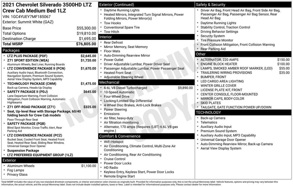 Experience the O'Meara Advantage. OâMeara offers a wide range of vehicles at competitive prices, and our knowledgeable staff is dedicated to helping customers find the perfect car to suit their needs. With over 100 years of experience serving Colorado, we have the expertise and reputation to back up our commitment to excellence and providing the best possible experience for our customers.Recent Arrival! Summit White 2021 Chevrolet Silverado 3500HD LTZ Clean CARFAX.10-Speed Automatic, 4WD, Jet Black Leather.
