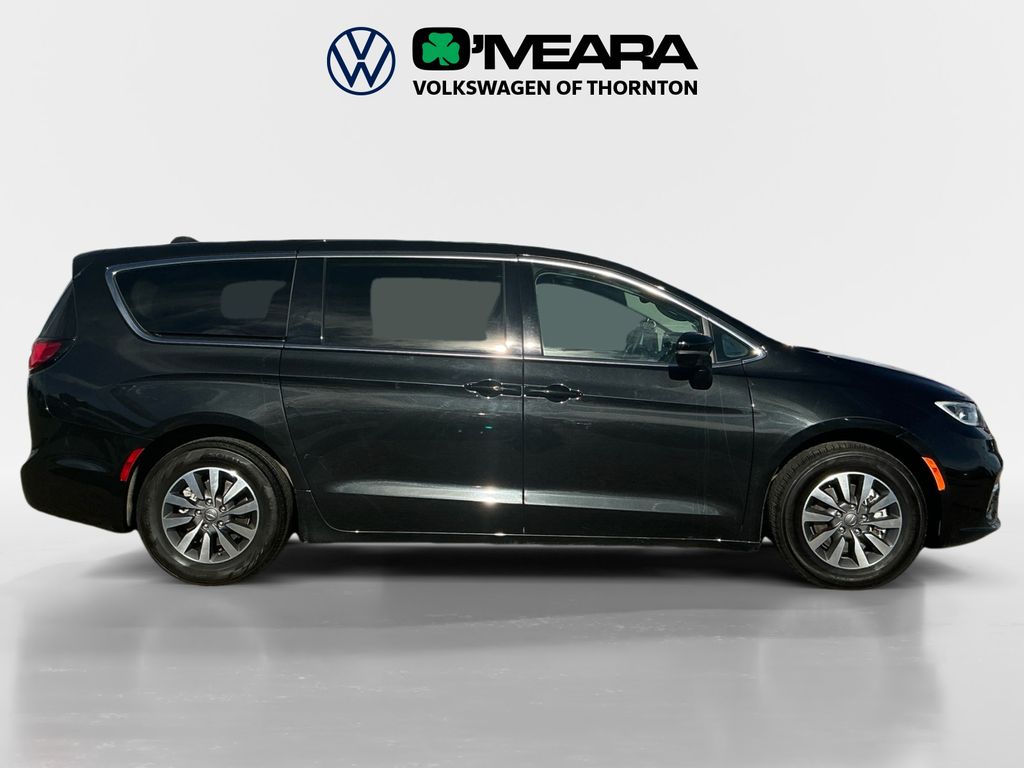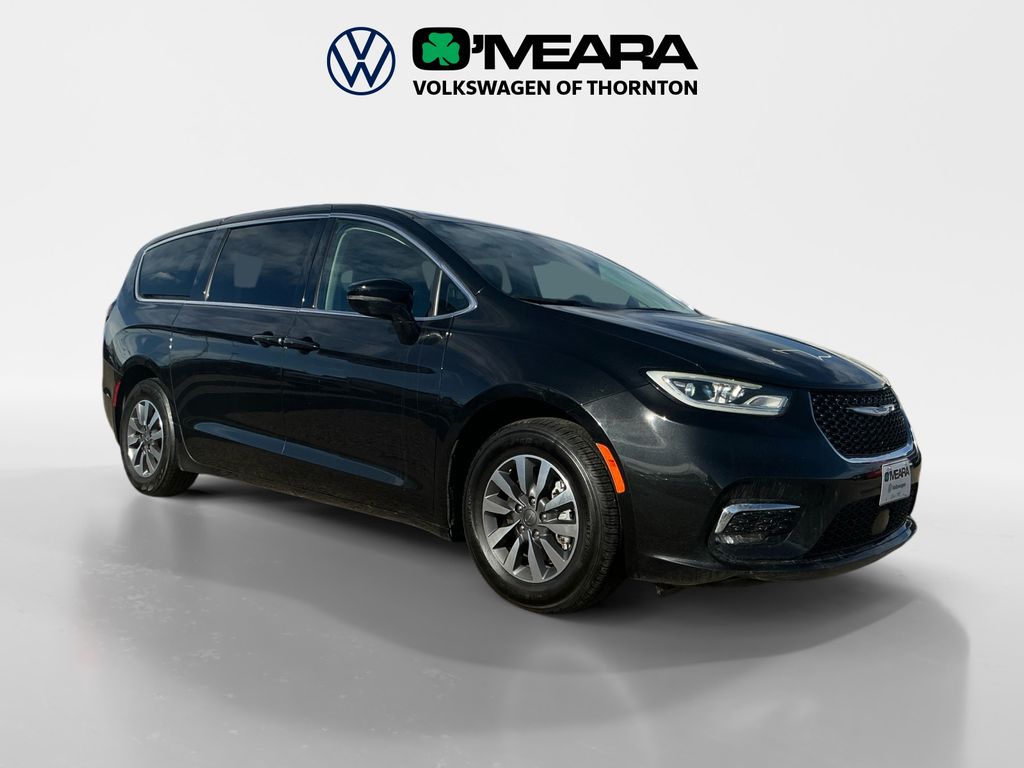 Pacifica Hybrid Select, 4D Passenger Van, 3.6L V6, CVT, FWD, Brilliant Black Crystal Pearlcoat, Black/Alloy/Black w/Caprice Leatherette Bucket Seats, 3rd row seats: split-bench, 4-Wheel Disc Brakes, 6 Speakers, ABS brakes, Air Conditioning, AM/FM radio: SiriusXM 360L, Apple CarPlay/Android Auto, Audio memory, Automatic temperature control, Brake assist, Bumpers: body-color, Caprice Leatherette Bucket Seats, Compass, Delay-off headlights, Driver door bin, Driver vanity mirror, Driver's Seat Mounted Armrest, Dual front impact airbags, Dual front side impact airbags, Electronic Stability Control, Emergency communication system, Exterior Mirrors w/Heating Element, Exterior Mirrors w/Supplemental Signals, Exterior Parking Camera Rear, Four wheel independent suspension, Front anti-roll bar, Front Bucket Seats, Front dual zone A/C, Front Fascia Air Deflectors, Front fog lights, Front reading lights, Fully automatic headlights, Gloss Black Exterior Mirrors, Heated door mirrors, Heated front seats, Heated steering wheel, Heavy Duty Suspension, Illuminated Cupholders, Illuminated entry, Integrated Active Noise Cancellation, Knee airbag, Low tire pressure warning, Memory seat, Navigation System, Occupant sensing airbag, Outside temperature display, Overhead airbag, Overhead console, Panic alarm, Passenger door bin, Passenger seat mounted armrest, Passenger vanity mirror, Power door mirrors, Power driver seat, Power Liftgate, Power steering, Power windows, Radio data system, Radio: Uconnect 5 Nav w/10.1" Display, Rain sensing wipers, Rear air conditioning, Rear reading lights, Rear window defroster, Rear window wiper, Reclining 3rd row seat, Remote keyless entry, Security system, Speed control, Split folding rear seat, Spoiler, Steering wheel mounted audio controls, Tachometer, Telescoping steering wheel, Tilt steering wheel, Traction control, Trip computer, Turn signal indicator mirrors, Variably intermittent wipers, Voltmeter, Wheels: 17" x 7.0" Diamond Cut w/Painted Pockets.