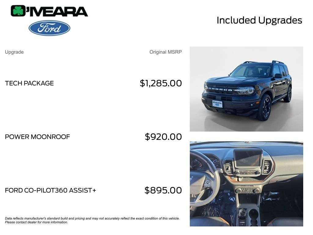 CARFAX One-Owner. Shadow Black 2023 Ford Bronco Sport Outer Banks 4WD 8-Speed Automatic 1.5L EcoBoost Local Trade, Non-Smoker, 4G LTE Wi-Fi Hotspot Credit, 6 Speakers, Automatic temperature control, Electronic Stability Control, Equipment Group 300A, Evasive Steering Assist, Ford Co-Pilot360 Assist+, Front dual zone A/C, HD Radio, Heated door mirrors, Heated steering wheel, Illuminated entry, Intelligent Adaptive Cruise Control w/Stop & Go, Power door mirrors, Power driver seat, Power Moonroof, Power windows, Remote keyless entry, Tachometer, Tech Package, Telescoping steering wheel, Tilt steering wheel, Trip computer, Universal Garage Door Opener (UGDO), Voice-Activated Touchscreen Navigation System, Wheels: 18" Ebony Black-Painted Aluminum, Wireless Charging Pad.