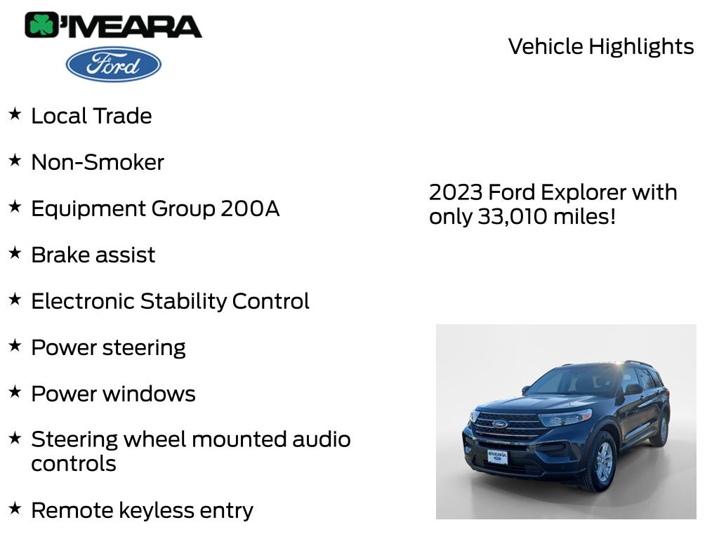 This 2023 Ford Explorer XLT is the perfect blend of performance, technology, and convenience. With a list price of $30,990, it's an exceptional value that you won't want to miss. Visit our showroom today and let us demonstrate how this exceptional SUV can enhance your everyday driving and weekend adventures.