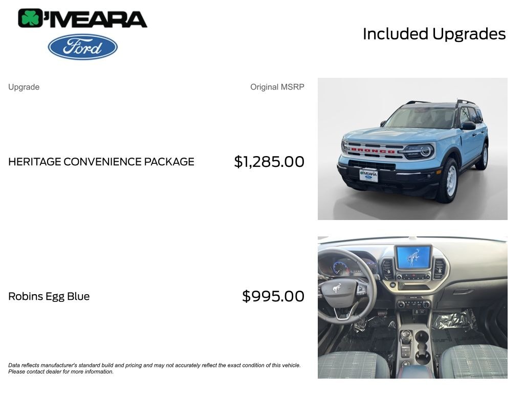 The Bronco Sport Heritage's rugged good looks are complemented by a host of advanced safety features, including Electronic Stability Control, Rear Parking Sensors, and a suite of airbags to give you and your loved ones peace of mind on the road. And with the available Cargo Management System, you'll have the flexibility to transport all your gear, whether it's for a weekend getaway or a day of outdoor adventure.