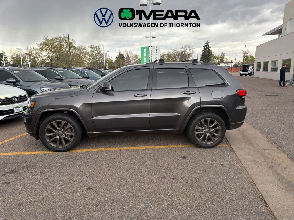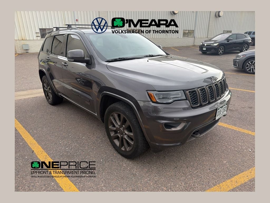 Low Miles, Great Color Combo, 75th Anniversary Package, Recently Serviced, 4 New Tires, Grand Cherokee Limited 75th Anniversary Edition, 4D Sport Utility, 3.6L V6 24V VVT, 8-Speed Automatic, 4WD, Granite Crystal Metallic Clearcoat, Black Leather, 1-Year SiriusXM Radio Service, 3.45 Rear Axle Ratio, 4-Wheel Disc Brakes, 5-Year SiriusXM Traffic Service, 5-Year SiriusXM Travel Link Service, 506 Watt Amplifier, 6 Speakers, 75th Anniversary Badge, 75th Anniversary Luxury Group (DISC), 8.4" Touchscreen Display, 9 Amplified Speakers w/Subwoofer, ABS brakes, Accent Color Roof Rails, Air Conditioning, Alloy wheels, AM/FM radio: SiriusXM, Anti-whiplash front head restraints, Audio memory, Auto High Beam Headlamp Control, Auto-dimming door mirrors, Auto-Dimming Exterior Passenger Mirror, Auto-Dimming Rear-View Mirror, Auto-dimming Rear-View mirror, Automatic Headlamp Leveling System, Automatic temperature control, Bi-Xenon High-Intensity Discharge Headlamps, Blind Spot & Cross Path Detection, Body Color Claddings, Body Color Door Handles, Body Color Exterior Mirrors, Body Color Fascias, Body Color Grille w/Bronze Accent, Body Color Shark Fin Antenna, Brake assist, Bridgestone Brand Tires, Bronze Fascia Applique, Bumpers: body-color, Compass, Dark Day Light Opening Moldings, Dark Headlamp Bezel Finish, Dark Lens Taillamps, Delay-off headlights, Delete Limited Badge, Driver door bin, Driver vanity mirror, Dual Bright Exhaust Tips, Dual front impact airbags, Dual front side impact airbags, Dual-Pane Panoramic Sunroof, Electronic Stability Control, Engine Oil Cooler, For Details Visit DriveUconnect.com, For More Info, Call 800-643-2112, Four wheel independent suspension, Front Accent/Body Color Fascia, Front anti-roll bar, Front Bronze Tow Hooks, Front Bucket Seats, Front Center Armrest w/Storage, Front dual zone A/C, Front fog lights, Front reading lights, Fully automatic headlights, Garage door transmitter, GPS Antenna Input, GPS Navigation, HD Radio, Heated door mirrors, Heated front seats, Heated rear seats, Heated steering wheel, Illuminated entry, Instrument Cluster w/Off-Road Disp. Pages, Integrated Voice Command w/Bluetooth, Jeep 75th Anniversary Package, Jeep Bronze Badging, Knee airbag, Leather Shift Knob, Leather Trimmed Bucket Seats, Leather Trimmed Bucket Seats (DJ) (DISC), Leather Trimmed Seats w/Perforated Inserts (AM) (DISC), LED Daytime Running Headlamps, LED Fog Lamps, Low tire pressure warning, Memory seat, Moroccan Sun Interior Accents, Nav-Capable! See Dealer for Details, Normal Duty Suspension, Occupant sensing airbag, Outside temperature display, Overhead airbag, Overhead console, Panic alarm, ParkView Rear Back-Up Camera, Passenger door bin, Passenger vanity mirror, Power door mirrors, Power driver seat, Power Liftgate, Power passenger seat, Power steering, Power Sunroof, Power Tilt/Telescope Steering Column, Power windows, Quick Order Package 23K 75th Anniversary (DISC), Radio data system, Radio: Uconnect 3 w/5" Display, Radio: Uconnect 3C Nav w/8.4" Display, Radio: Uconnect 3C w/8.4" Display, Rain Sensitive Windshield Wipers, Rear Accent/Body Color Fascia, Rear anti-roll bar, Rear reading lights, Rear seat center armrest, Rear window defroster, Rear window wiper, Remote keyless entry, Roadside Assistance & 9-1-1 Call, Roof rack: rails only, Security system, SiriusXM Satellite Radio, SiriusXM Traffic, SiriusXM Travel Link, Speed control, Speed-Sensitive Wipers, Split folding rear seat, Spoiler, Steering wheel mounted audio controls, Tachometer, Tangerine Interior Accents, Telescoping steering wheel, Tilt steering wheel, Traction control, Trip computer, Turn signal indicator mirrors, Uconnect Access, Variably intermittent wipers, Ventilated Front Seats, Wheels: 18" x 8.0" Tech Gray Aluminum, Wheels: 20" x 8.0" 75th Version B (DISC).