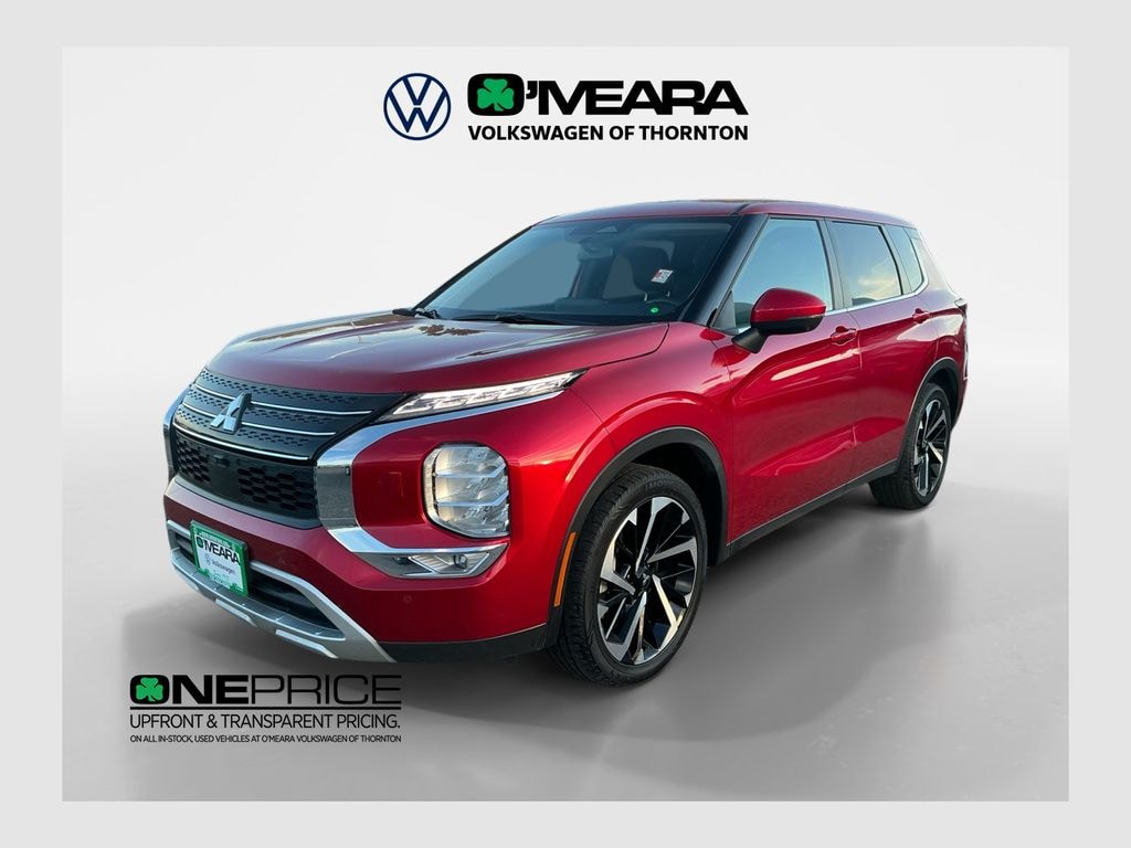 Outlander SE Black Edition w/Pano Roof, 4D Sport Utility, 2.5L 4-Cylinder DOHC, CVT, 4WD, Red, 3rd row seats: split-bench, 4-Wheel Disc Brakes, 5.694 Axle Ratio, 6 Speakers, ABS brakes, Air Conditioning, AM/FM radio: SiriusXM, Android Auto & Apple CarPlay, Auto High-beam Headlights, Automatic temperature control, Brake assist, Bumpers: body-color, Driver door bin, Driver vanity mirror, Dual front impact airbags, Dual front side impact airbags, Electronic Stability Control, Emergency communication system: Mitsubishi Connect w/ 24-month trial, Exterior Parking Camera Rear, Four wheel independent suspension, Front anti-roll bar, Front Bucket Seats, Front Center Armrest w/Storage, Front dual zone A/C, Front fog lights, Front reading lights, Fully automatic headlights, Headlight cleaning, Heated door mirrors, Heated Front Bucket Seats, Heated front seats, Illuminated entry, Knee airbag, Leather Shift Knob, Leather steering wheel, Low tire pressure warning, Navigation System, Occupant sensing airbag, Outside temperature display, Overhead airbag, Overhead console, Panic alarm, Passenger door bin, Passenger vanity mirror, Power door mirrors, Power driver seat, Power Liftgate, Power steering, Power windows, Radio data system, Radio: AM/FM 9.0" Navigation w/Smartphone Link, Rain sensing wipers, Rear anti-roll bar, Rear seat center armrest, Rear side impact airbag, Rear window defroster, Rear window wiper, Reclining 3rd row seat, Remote keyless entry, Security system, Speed control, Speed-Sensitive Wipers, Split folding rear seat, Spoiler, Steering wheel mounted audio controls, Synthetic Leather Seat Trim, Tachometer, Telescoping steering wheel, Tilt steering wheel, Traction control, Trip computer, Turn signal indicator mirrors, Variably intermittent wipers.