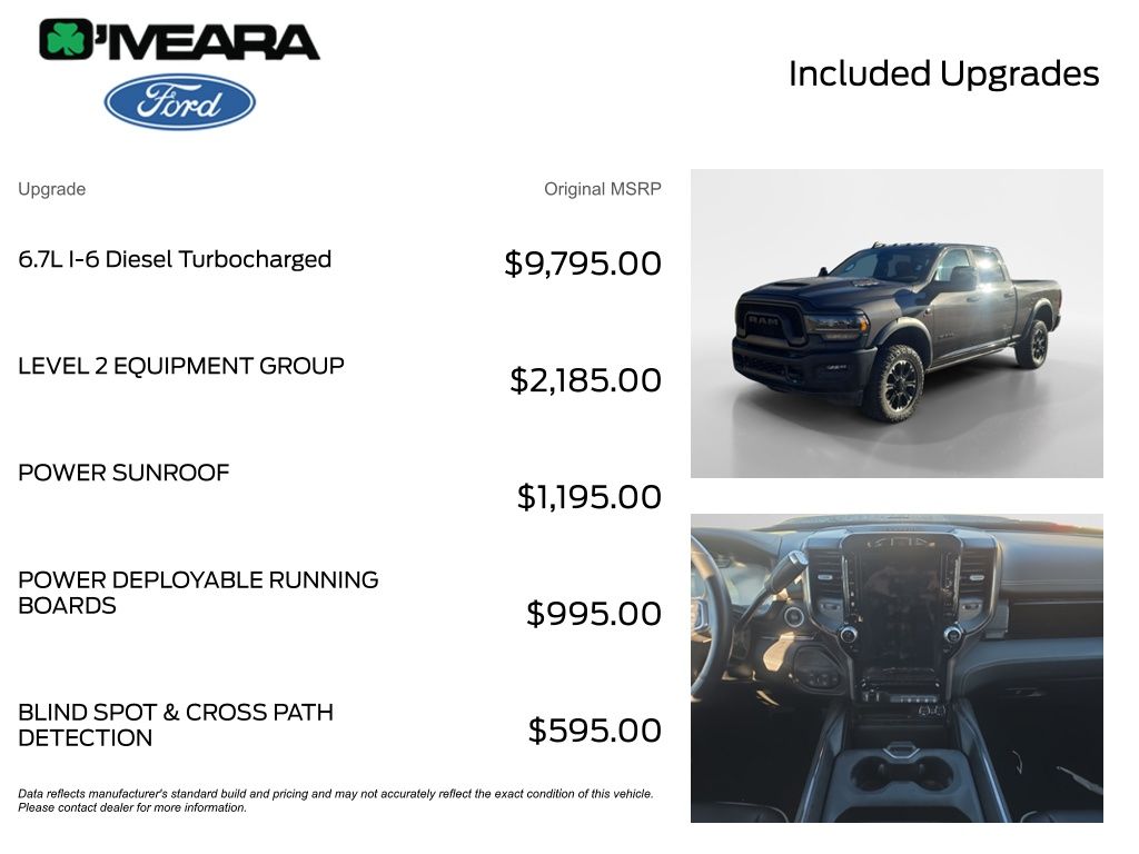 Beneath the bold, rugged exterior lies the heart of a true performer - the legendary Cummins 6.7L I6 Turbodiesel engine, paired with a smooth-shifting 6-speed automatic transmission and robust 4WD system. Whether you're tackling tough job sites or exploring the great outdoors, this Ram 2500 Rebel is built to handle it all with unwavering confidence.