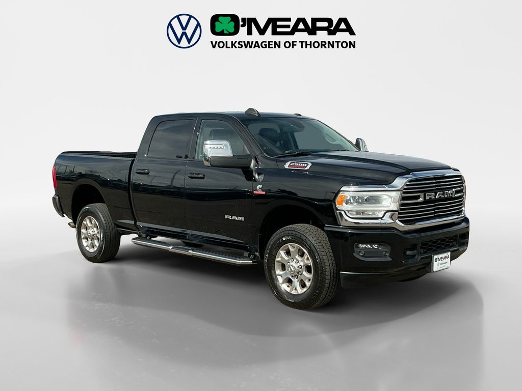 2500 Laramie, 4D Crew Cab, Cummins 6.7L I6 Turbodiesel, 6-Speed Automatic, 4WD, Diamond Black Crystal Pearlcoat, Black Leather, 10 Speakers, 115V Auxiliary Rear Power Outlet, 12" Touchscreen Display, 2 Way Rear Headrest Seat, 220 Amp Alternator, 2nd Row In Floor Storage Bins, 3.73 Axle Ratio, 4 Way Front Headrests, 4-Wheel Disc Brakes, 4G LTE Wi-Fi Hot Spot, ABS brakes, Active Noise Control System, Air Conditioning, Alexa Built-In, Alloy wheels, AM/FM radio: SiriusXM with 360L, Apple CarPlay, Apple CarPlay/Android Auto, Auto Adjust In Reverse Exterior Mirrors, Auto Dim Exterior Mirror, Auto High Beam Headlamp Control, Auto Power-Folding Mirrors, Auto-Dimming Exterior Passenger Mirror, Automatic temperature control, Blind Spot & Cross Path Detection, Brake assist, Bumpers: body-color, Center Hub, Chrome Exterior Mirrors, Chrome Flat Cab-Length Side Steps, Compass, Connected Travel & Traffic Services, Connectivity - US/Canada, Delay-off headlights, Disassociated Touchscreen Display, Driver door bin, Driver vanity mirror, Dual front impact airbags, Dual front side impact airbags, Electronic Stability Control, Electronically Controlled Throttle, Exterior Mirrors Courtesy Lamps, Exterior Mirrors w/Heating Element, Exterior Mirrors w/Memory, Exterior Mirrors w/Supplemental Signals, Foam Bottle Insert (Door Trim Panel), For Details, Visit DriveUconnect.com, For More Info, Call 800-643-2112, Forward & Reverse Utility Lights, Front anti-roll bar, Front Center Armrest w/Storage, Front dual zone A/C, Front LED Fog Lamps, Front reading lights, Front Seat Back Map Pockets, Fully automatic headlights, Garage door transmitter, Global Telematics Box Module (TBM), Google Android Auto, GPS Antenna Input, GPS Navigation, HD Radio, Heated door mirrors, Heated Front Seats, Heated front seats, Heated Steering Wheel, Heated steering wheel, Illuminated entry, Integrated Voice Command w/Bluetooth, Laramie Level 1 Equipment Group, Leather steering wheel, Leather Trim 40/20/40 Bench Seat, LED Reflector Headlamps, LED Tail Lamps, Low tire pressure warning, Manufacturer's Statement of Origin, Mirror Running Lights, Navigation System, Occupant sensing airbag, Off-Road Information Pages, Outside temperature display, Overhead airbag, Overhead console, Panic alarm, ParkSense Front/Rear Park Assist System, ParkView Rear Back-Up Camera, Passenger door bin, Power 2-Way Driver Lumbar Adjust, Power 2-Way Passenger Lumbar Adjust, Power Adjust 8-Way Driver Seat, Power Adjust 8-Way Front Passenger Seat, Power Adjust Mirrors, Power Adjustable Convex Aux Mirrors, Power Adjustable Pedals w/Memory, Power door mirrors, Power driver seat, Power Heated Fold Telescopic Mirrors w/Memory, Power passenger seat, Power steering, Power Telescoping Mirrors, Power windows, Quick Order Package 2HH Laramie, Radio data system, Radio: Uconnect 5 Nav w/12.0" Display, Rain Sensitive Windshield Wipers, Rear 60/40 Folding Seat, Rear anti-roll bar, Rear Power Sliding Window, Rear reading lights, Rear seat center armrest, Rear step bumper, Rear Window Defroster, Rear window defroster, Remote keyless entry, Remote Tailgate Release, Security system, Selectable Tire Fill Alert, SiriusXM Radio Service, SiriusXM w/360L, Speed control, Split folding rear seat, Steering wheel mounted audio controls, Tachometer, Tilt steering wheel, Tip Start, Tow Hooks, Traction control, Trailer Tow Pages, Trip computer, Turn signal indicator mirrors, Variably intermittent wipers, Voltmeter, Wheels: 18" x 8.0" Polished Aluminum.