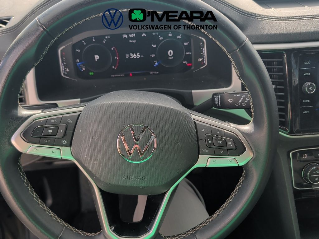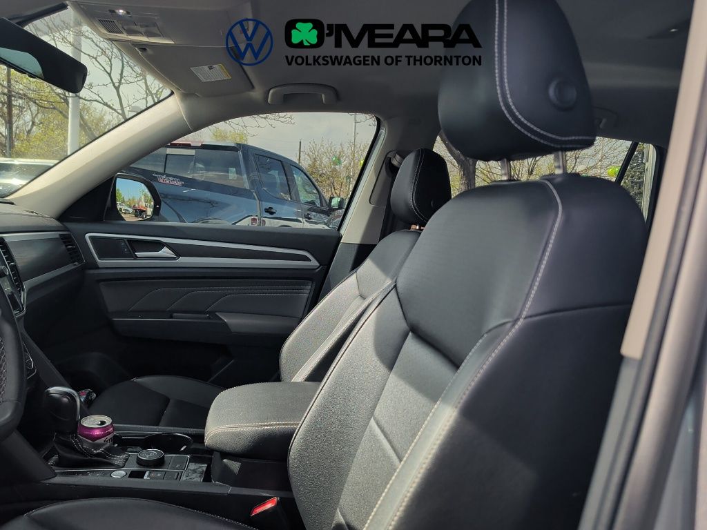 Local Trade In, One Owner, Fully Serviced, Atlas 3.6L V6 SE w/Technology, 4D Sport Utility, 3.6L VR6, 8-Speed Automatic with Tiptronic, AWD, Pyrite Silver Metallic, Titan Black Premium Synthetic, 3.60 Axle Ratio, 3rd row seats: split-bench, 4-Wheel Disc Brakes, 6 Speakers, ABS brakes, Air Conditioning, Alloy wheels, AM/FM radio: SiriusXM with 360L, Atlas Protection Package- Bench Seat, Auto-Dimming Rear-View Mirror, Auto-dimming Rear-View mirror, Automatic temperature control, Brake assist, Bumpers: body-color, Compass, Delay-off headlights, Driver door bin, Driver vanity mirror, Dual front impact airbags, Dual front side impact airbags, Electronic Stability Control, Emergency communication system: VW Car-Net Safe & Secure 5-year, Exterior Parking Camera Rear, Four wheel independent suspension, Front anti-roll bar, Front Bucket Seats, Front Center Armrest, Front dual zone A/C, Front fog lights, Front reading lights, Fully automatic headlights, Heated Comfort Front Bucket Seats, Heated door mirrors, Heated front seats, Heavy Duty Trunk Liner w/VW CarGo Blocks, Illuminated entry, Leather Shift Knob, Low tire pressure warning, Luggage Net, Occupant sensing airbag, Outside temperature display, Overhead airbag, Overhead console, Panic alarm, Passenger door bin, Passenger vanity mirror, Perforated V-Tex Leatherette Seating Surfaces, Power door mirrors, Power driver seat, Power Liftgate, Power steering, Power windows, Radio data system, Radio: MIB3 Composition Media w/8" Touchscreen, Rain sensing wipers, Rear air conditioning, Rear anti-roll bar, Rear reading lights, Rear seat center armrest, Rear window defroster, Rear window wiper, Remote keyless entry, Roadside Assistance Kit, Rubber Mats Kit - Bench Seats, Security system, Speed control, Speed-sensing steering, Split folding rear seat, Spoiler, Standard Suspension, Steering wheel mounted audio controls, Tachometer, Telescoping steering wheel, Tilt steering wheel, Traction control, Trip computer, Turn signal indicator mirrors, Variably intermittent wipers, VW Care, Wheels: 20" x 8J 5-Spoke Silver Painted Alloy.