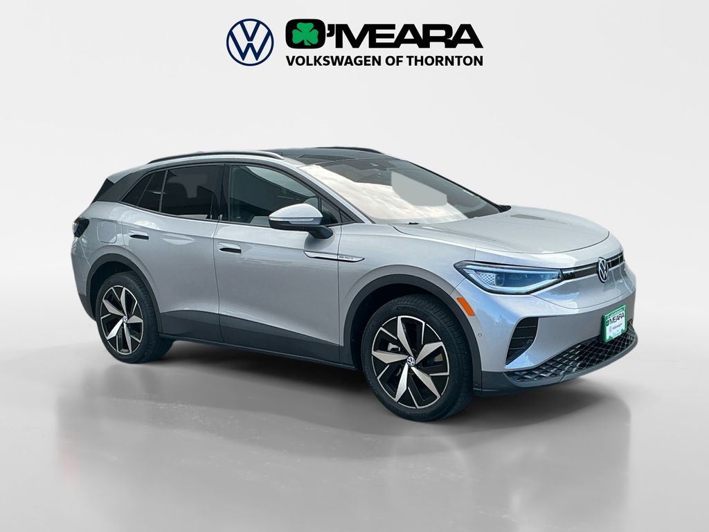 Low Low Miles, 2 VW Keys, Great Color Combo, ID.4 Pro S, 4D Sport Utility, Electric Motor, Single-Speed Automatic, AWD, Silver Mist Metallic, Black w/Gray Bolsters w/Perforated V-Tex Leatherette Seating Surfaces, 3.90 Axle Ratio, 4 Wheel Independent Suspension, 7 Speakers, ABS brakes, Air Conditioning, Alloy wheels, Auto High-beam Headlights, Auto-dimming Rear-View mirror, Automatic temperature control, Brake assist, Bumpers: body-color, Delay-off headlights, Driver door bin, Driver vanity mirror, Driver's Seat Mounted Armrest, Dual front impact airbags, Dual front side impact airbags, Electronic Stability Control, Emergency communication system: VW Car-Net Safe & Secure 5-year, Exterior Parking Camera Rear, Four wheel independent suspension, Front anti-roll bar, Front Bucket Seats, Front dual zone A/C, Front fog lights, Front reading lights, Fully automatic headlights, Heated door mirrors, Heated Front Seats, Heated front seats, Heated steering wheel, Illuminated entry, Low tire pressure warning, Memory seat, Navigation System, Occupant sensing airbag, Outside temperature display, Overhead airbag, Overhead console, Panic alarm, Passenger door bin, Passenger seat mounted armrest, Passenger vanity mirror, Perforated V-Tex Leatherette Seating Surfaces, Power door mirrors, Power driver seat, Power Liftgate, Power passenger seat, Power steering, Power windows, Radio data system, Radio: Discover Pro Max w/12" Touchscreen Nav, Rain sensing wipers, Rear anti-roll bar, Rear reading lights, Rear seat center armrest, Rear window defroster, Rear window wiper, Remote keyless entry, Speed control, Speed-sensing steering, Split folding rear seat, Spoiler, Steering wheel mounted audio controls, Telescoping steering wheel, Tilt steering wheel, Traction control, Trip computer, Turn signal indicator mirrors, Variably intermittent wipers, Wheels: 20" 5-Spoke 2-Tone Machined Alloy.